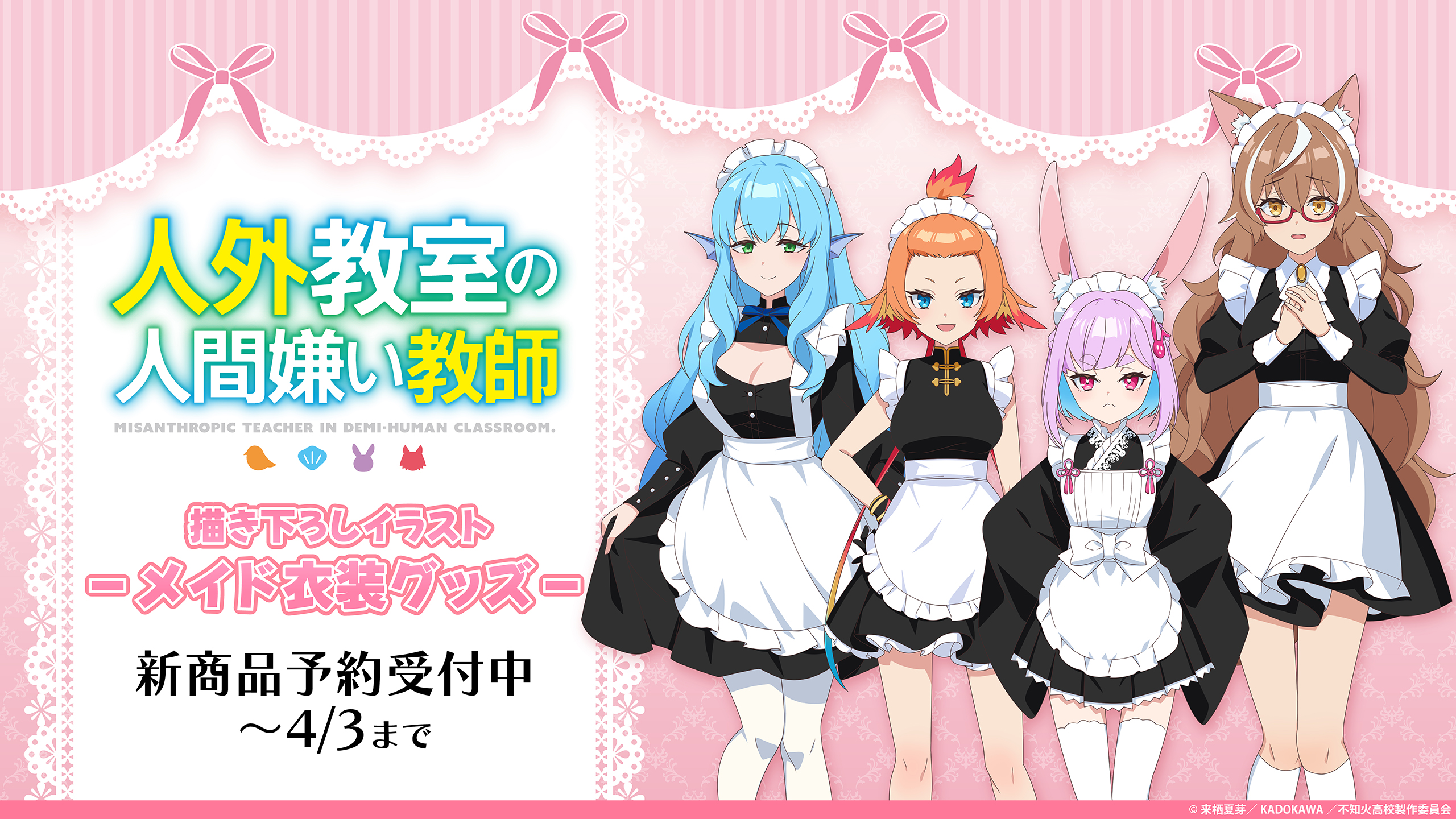 TVアニメ『人外教室の人間嫌い教師』のメイド衣装イラスト描き下ろしによる新作グッズが受注開始!!