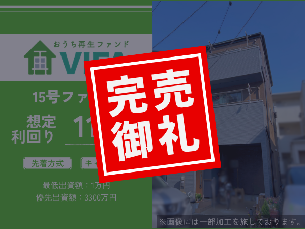 【完売御礼!&新規募集開始】「おうちの再生ファンドVIFA」15号ファンド完売!4月2日に16号ファンドを募集開始します!