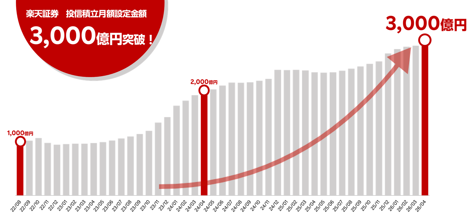 楽天証券、投信積立の月額設定金額、3,000億円を突破!