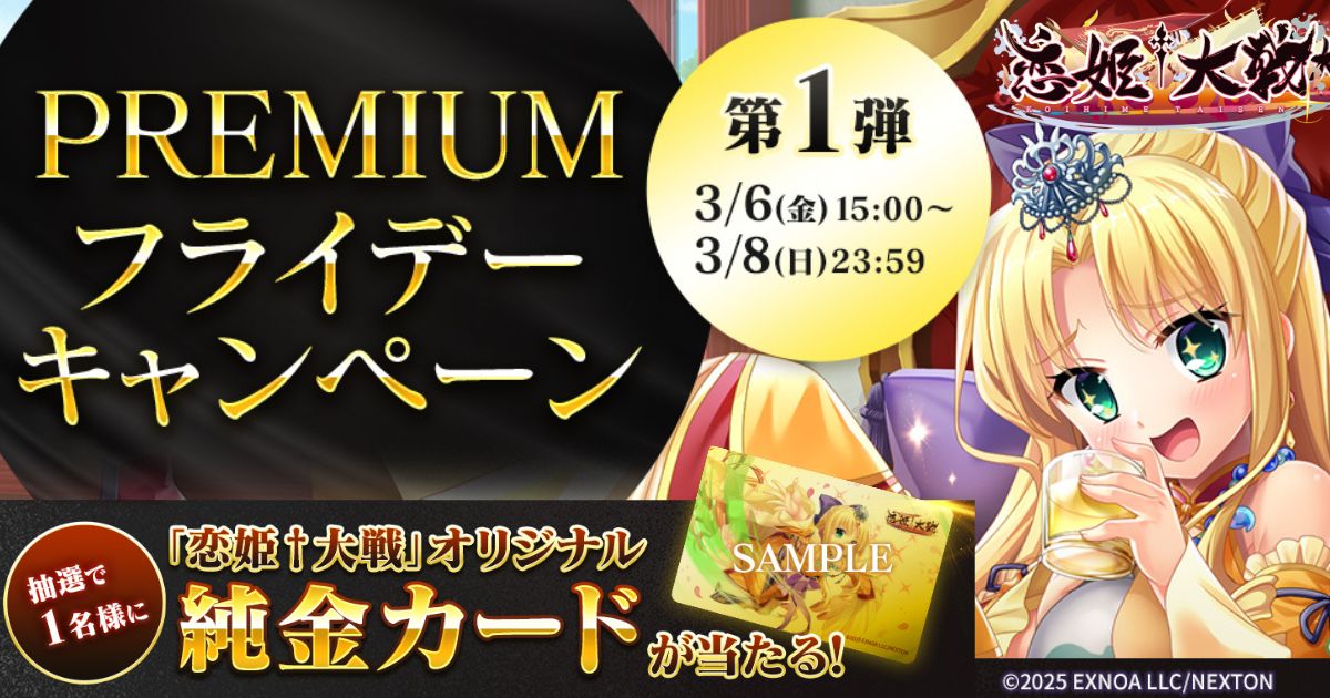 恋姫全シリーズ集結!DMM GAMES『恋姫†大戦』「純金カード」がもらえる「PREMIUMフライデーキャンペーン第1弾」開始!