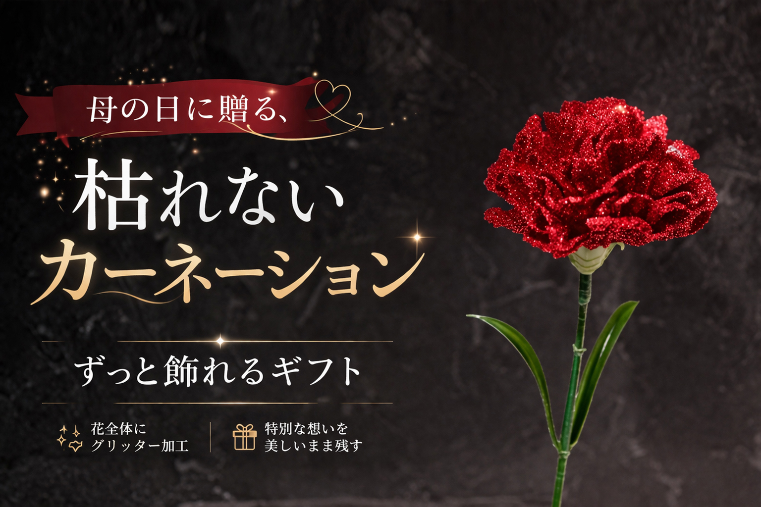 母の日ギフトに新提案。枯れないカーネーションの新しい選択肢「グリッターカーネーション」が登場|グリッターローズ専門店 IRiller(アイリエ)