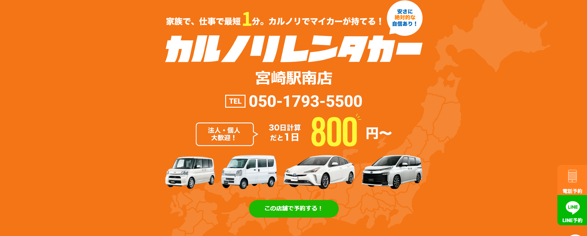 格安マンスリーレンタカー専門店、カルノリレンタカーが宮崎県に2店舗目『宮崎駅南店』を4月1日にオープン