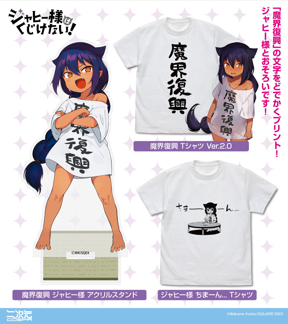 ジャヒー様とおそろい!『ジャヒー様はくじけない!』より、リニューアルした「魔界復興」のTシャツをはじめ、アクリルスタンド、トートバッグなどさまざまな「ジャヒー様」グッズが登場!【株式会社コスパ】
