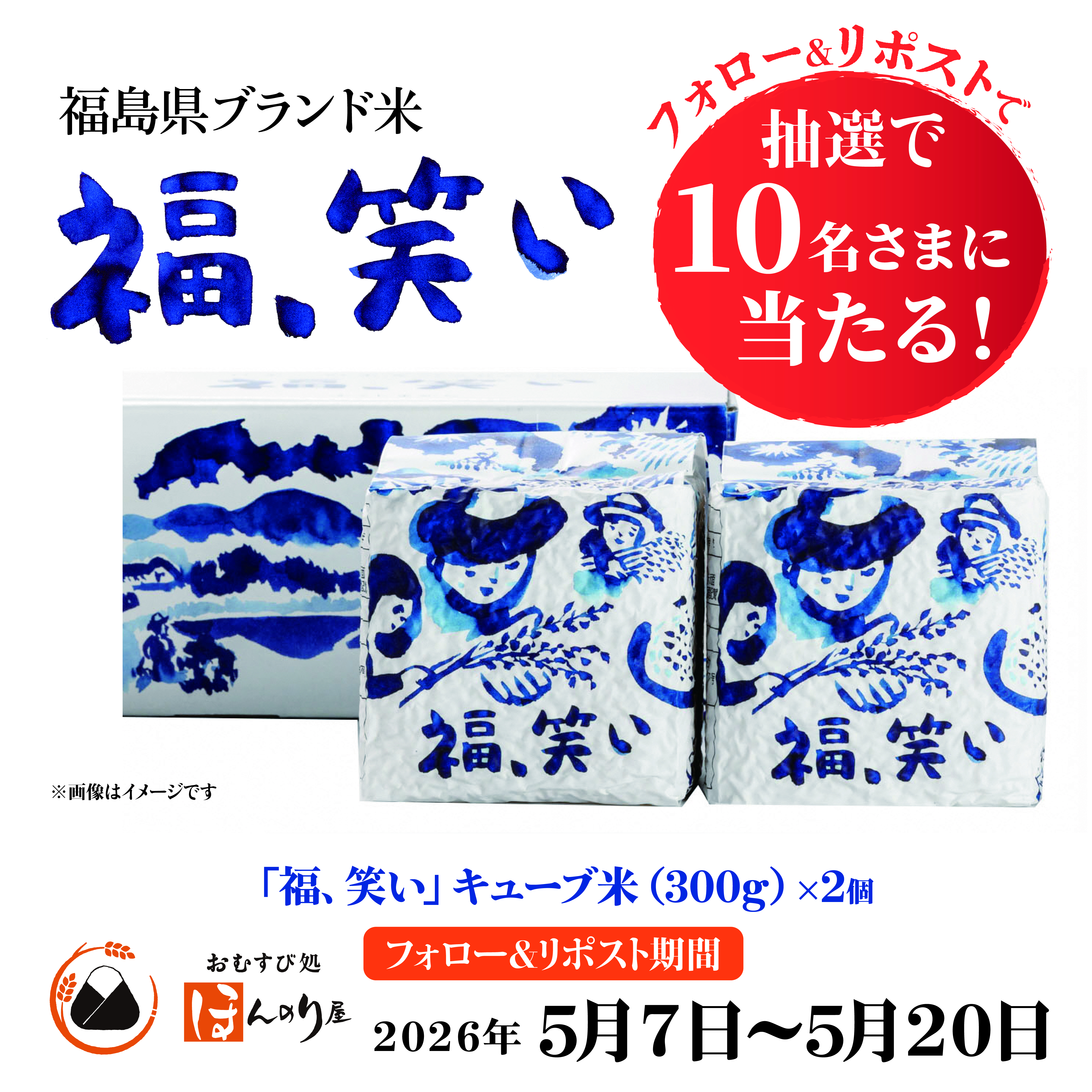 福島のお米「福、笑い」の魅力を発信!福島県産ブランド米「福、笑い」使用のおむすびをほんのり屋 新橋店で販売。公式Xでお米が当たるキャンペーンも実施!