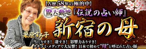 【占歴58年の極的中】驚天動地『伝説の占い師』新宿の母◆栗原すみ子のコンテンツが「本格占い|みのり」で提供開始