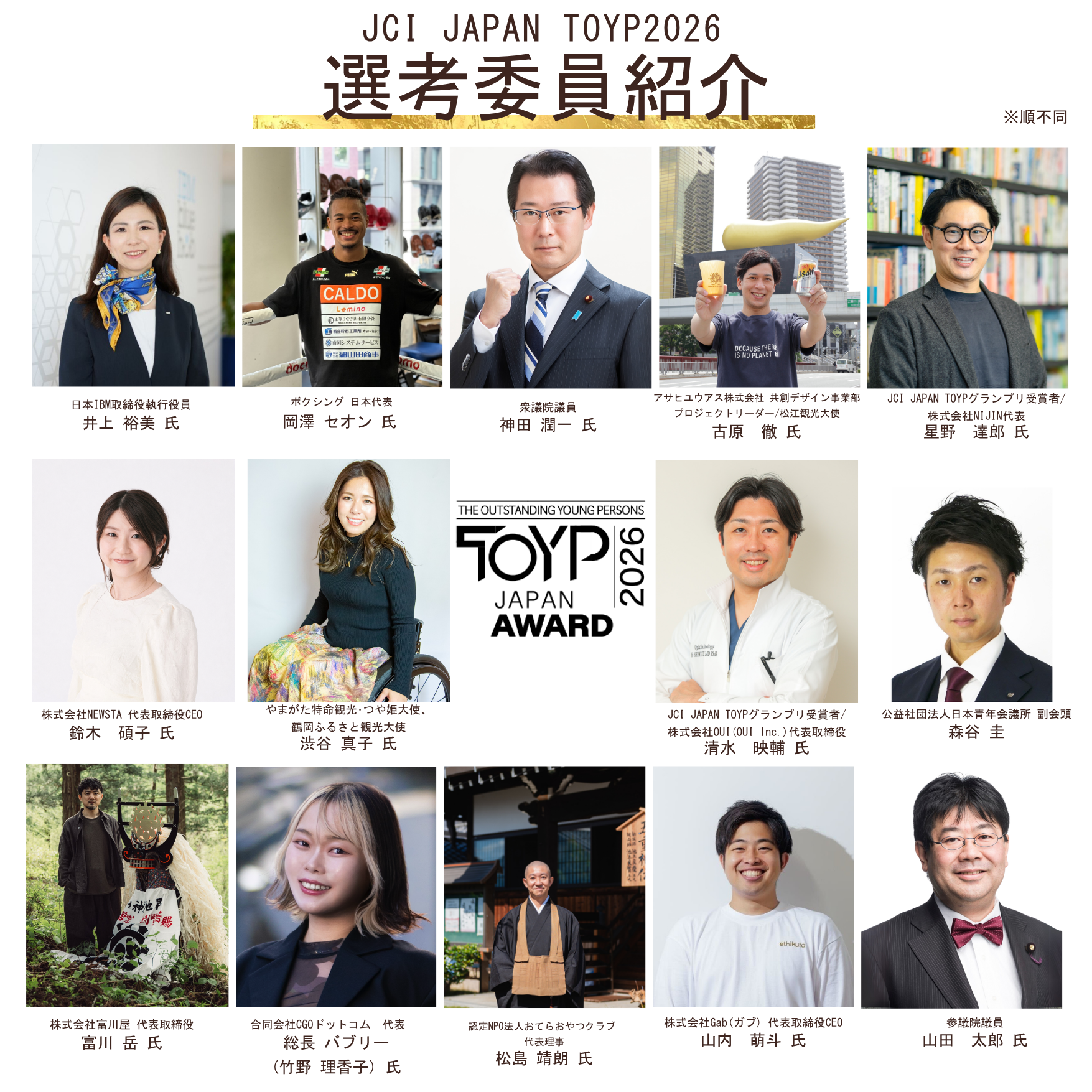 青年版国民栄誉賞「JCI JAPAN TOYP 2026」最終選考会・選考委員14名が決定