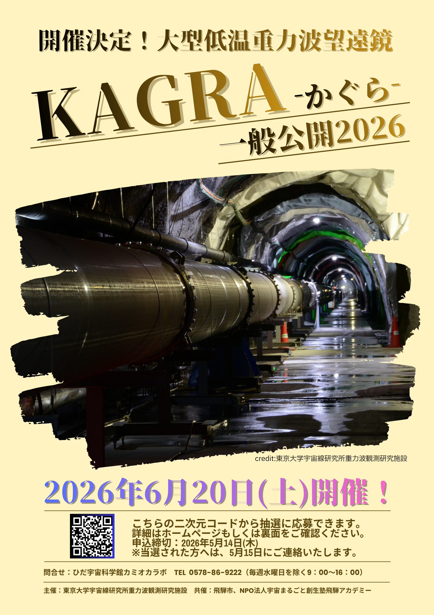 【岐阜県飛騨市】アインシュタイン最後の宿題に挑む、地下200mの巨大装置「KAGRA一般公開2026」を6月20日(土)に開催!片道3kmのL字型・大型低温重力波望遠鏡を見学