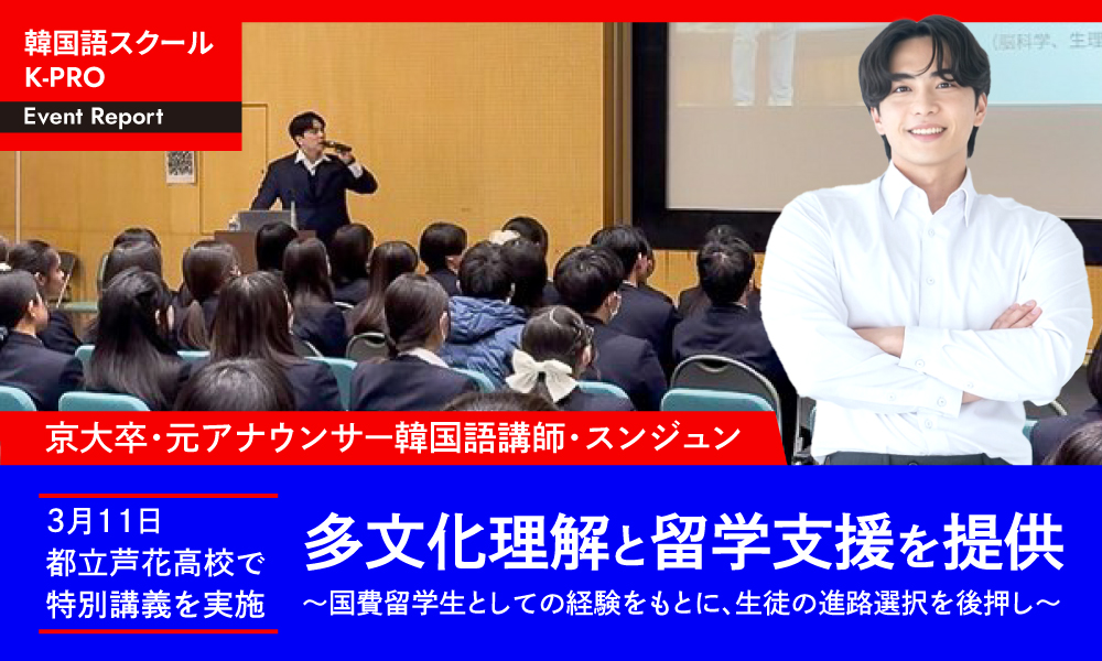 K-PRO代表・スンジュンが3月11日、都立芦花高校で特別講義を実施。多文化理解と留学支援を提供