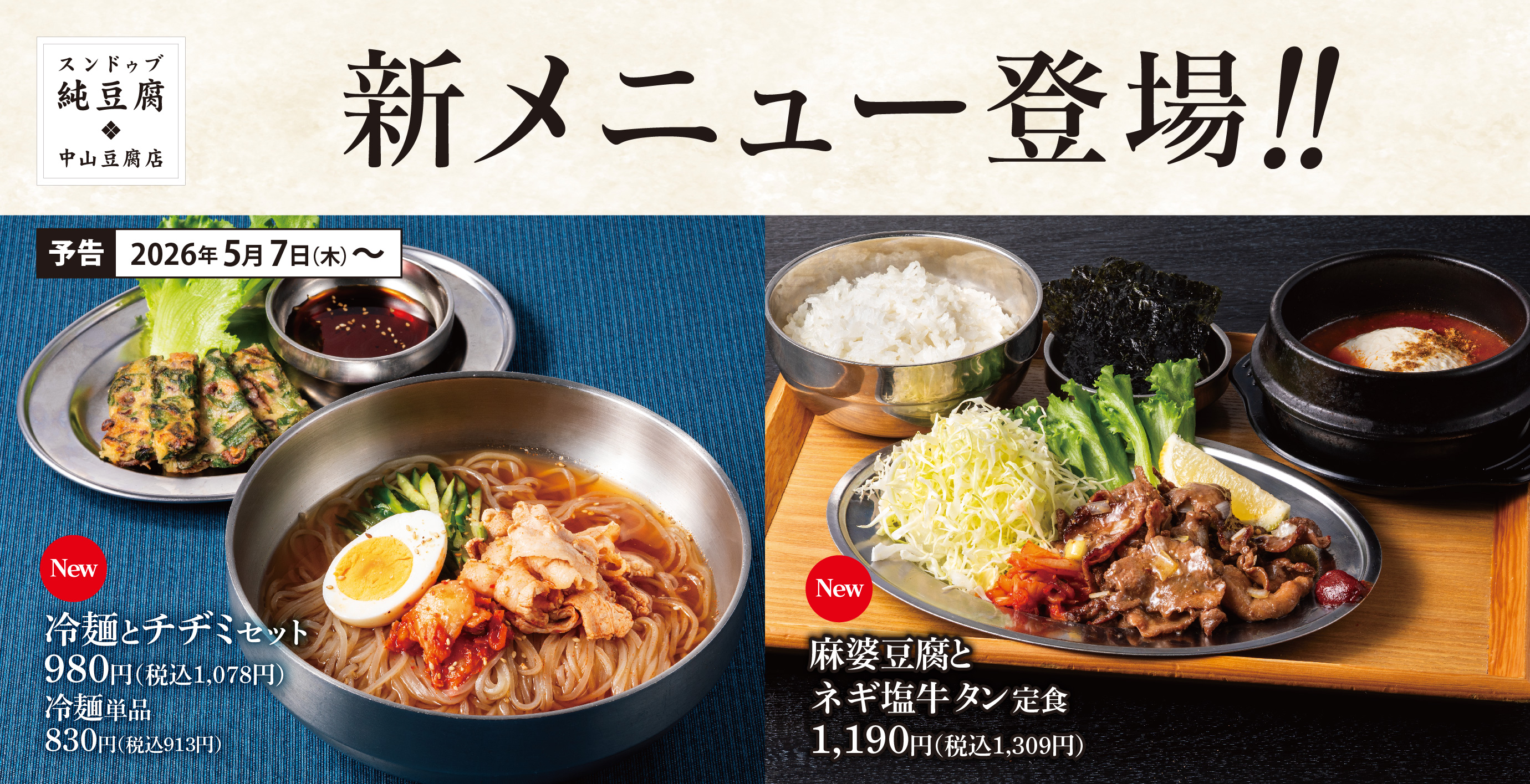 夏に食べたい美味しいものずらり。「ネギ塩牛タン、冷麺、ビビン麺、サーモンユッケビビンバなど」中山豆腐店にて新グランドメニュー始動!