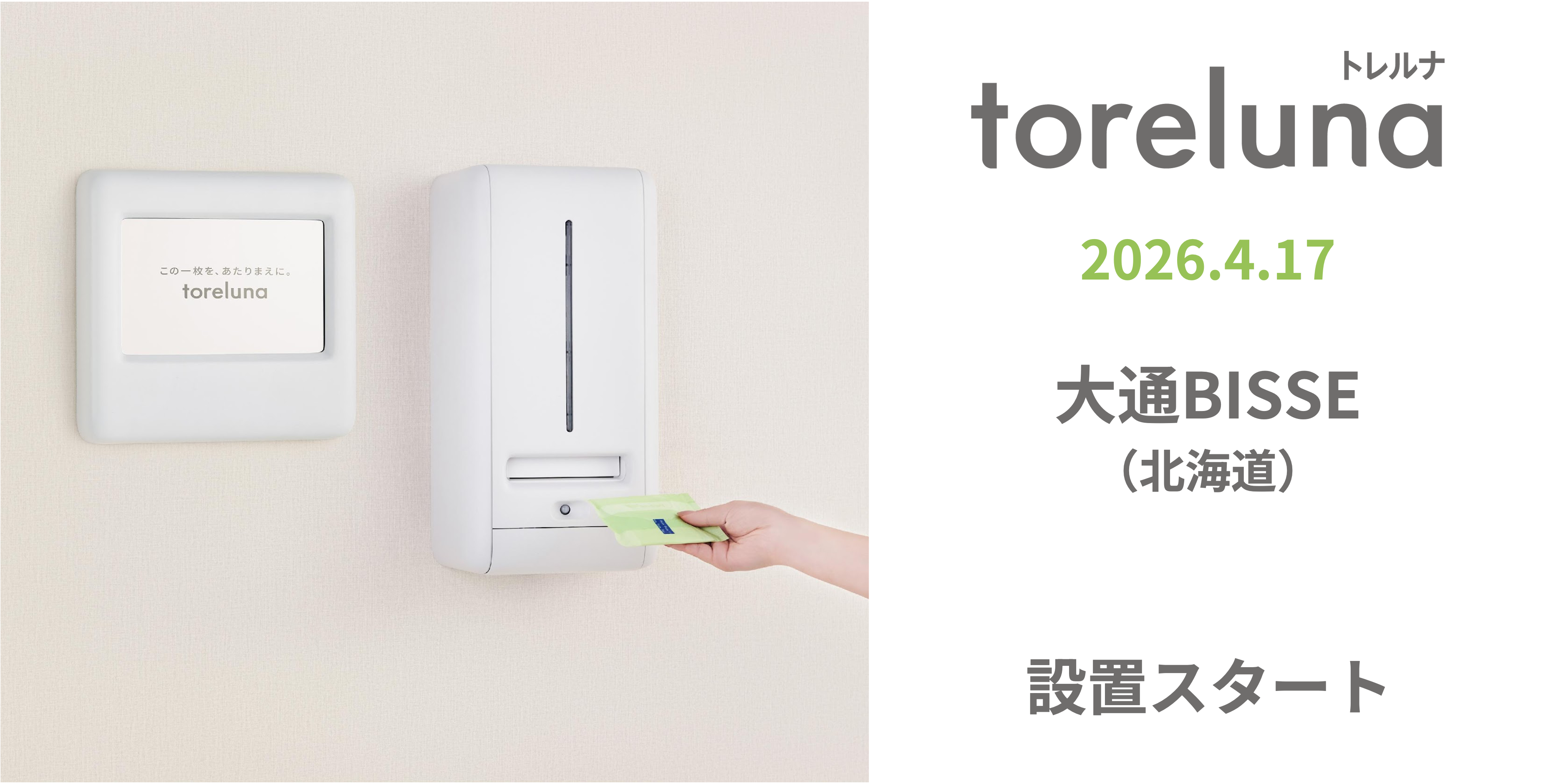 トイレの個室で生理用ナプキンが無料で受け取れる「トレルナ」大通BISSEへ設置