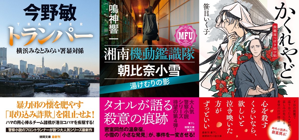 巨匠・新鋭の警察小説競演――今野敏氏と鳴神響一氏の人気シリーズ最新作、『深川あやかし屋敷奇譚』で注目の笹目いく子氏の新作など、徳間文庫4月新刊、発売! -