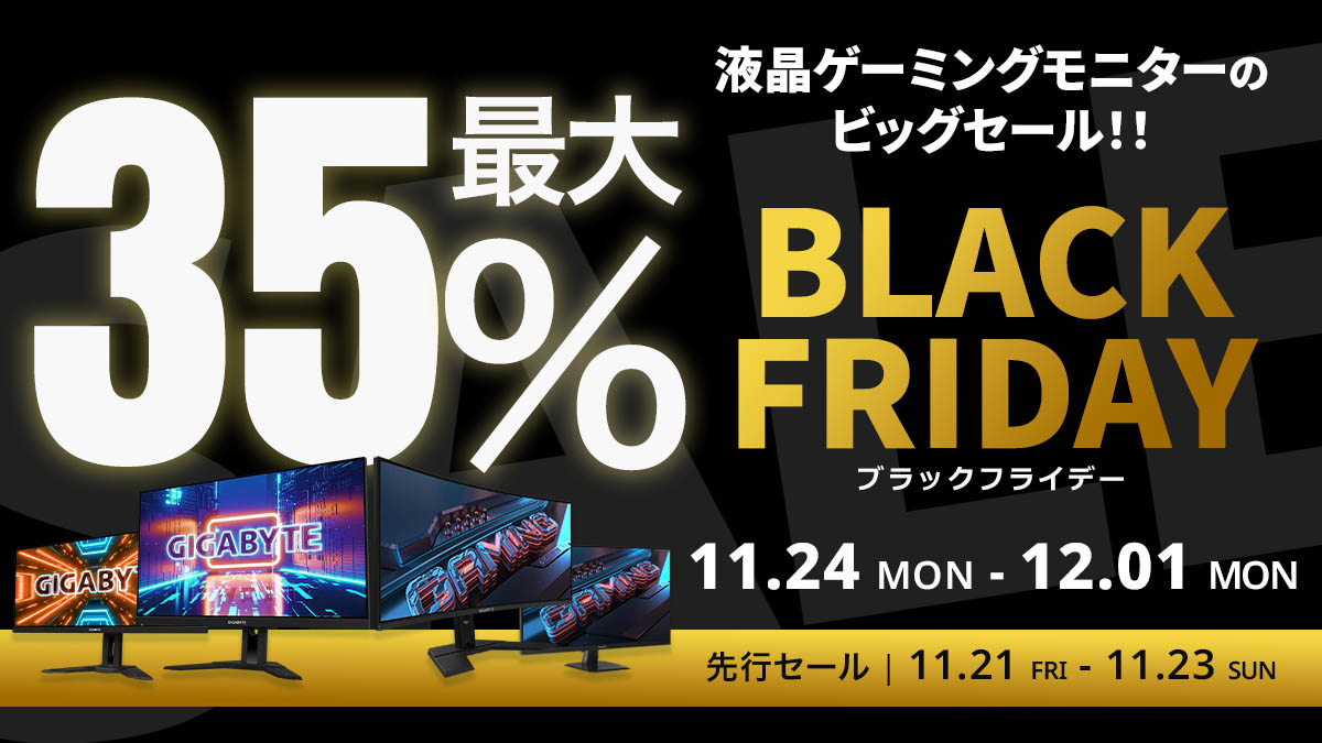 【Amazon ブラックフライデー】GIGABYTEの液晶ゲーミングモニター6製品が最大35%オフ!11/21(金)からAmazonブラックフライデー先行セール開催! -