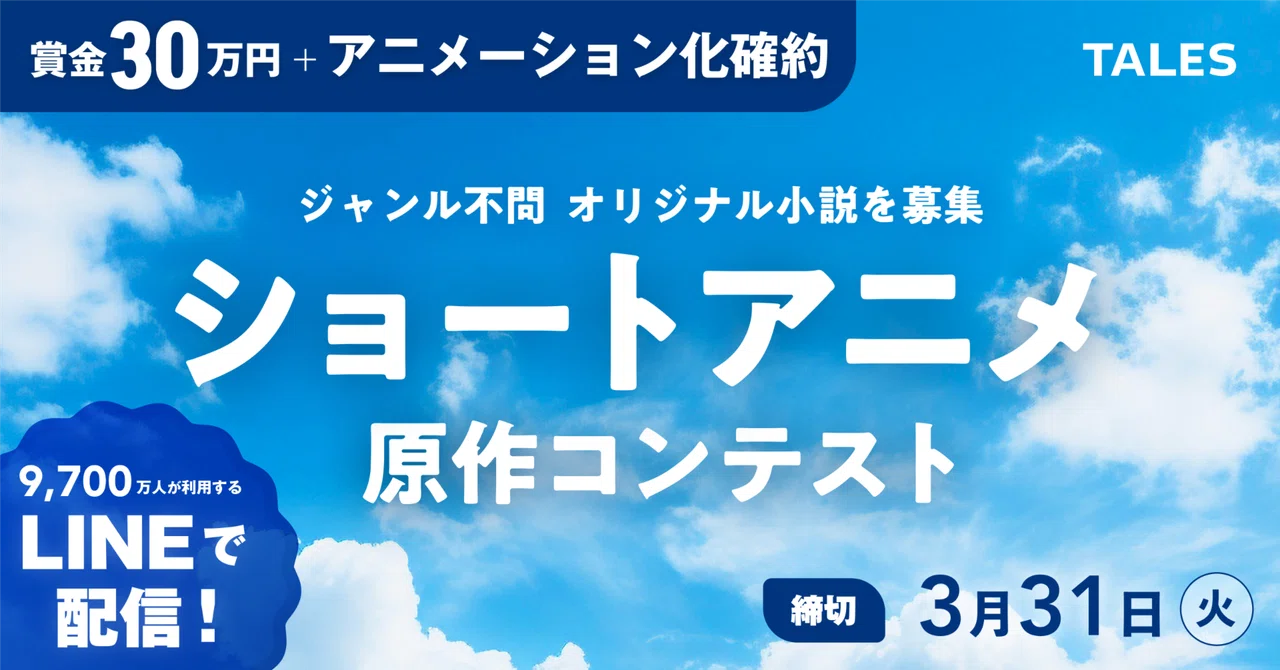 ショートアニメ原作を大募集!準大賞以上はアニメ化、LINEで配信確約【締め切り2026年3月31日】 -