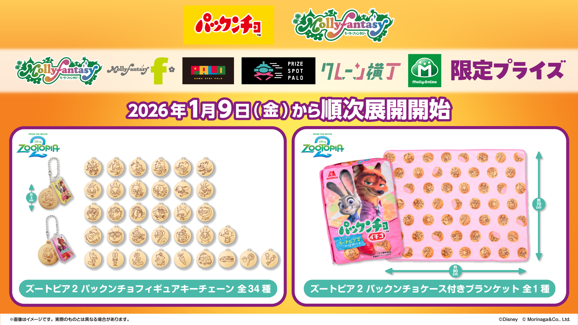 ディズニー映画「ズートピア2」デザインの『パックンチョ』パッケージを再現した「ブランケット」と「フィギュアチェーン」がプライズに登場! 1月9日(金)よりモーリーファンタジー・PALOにて展開開始