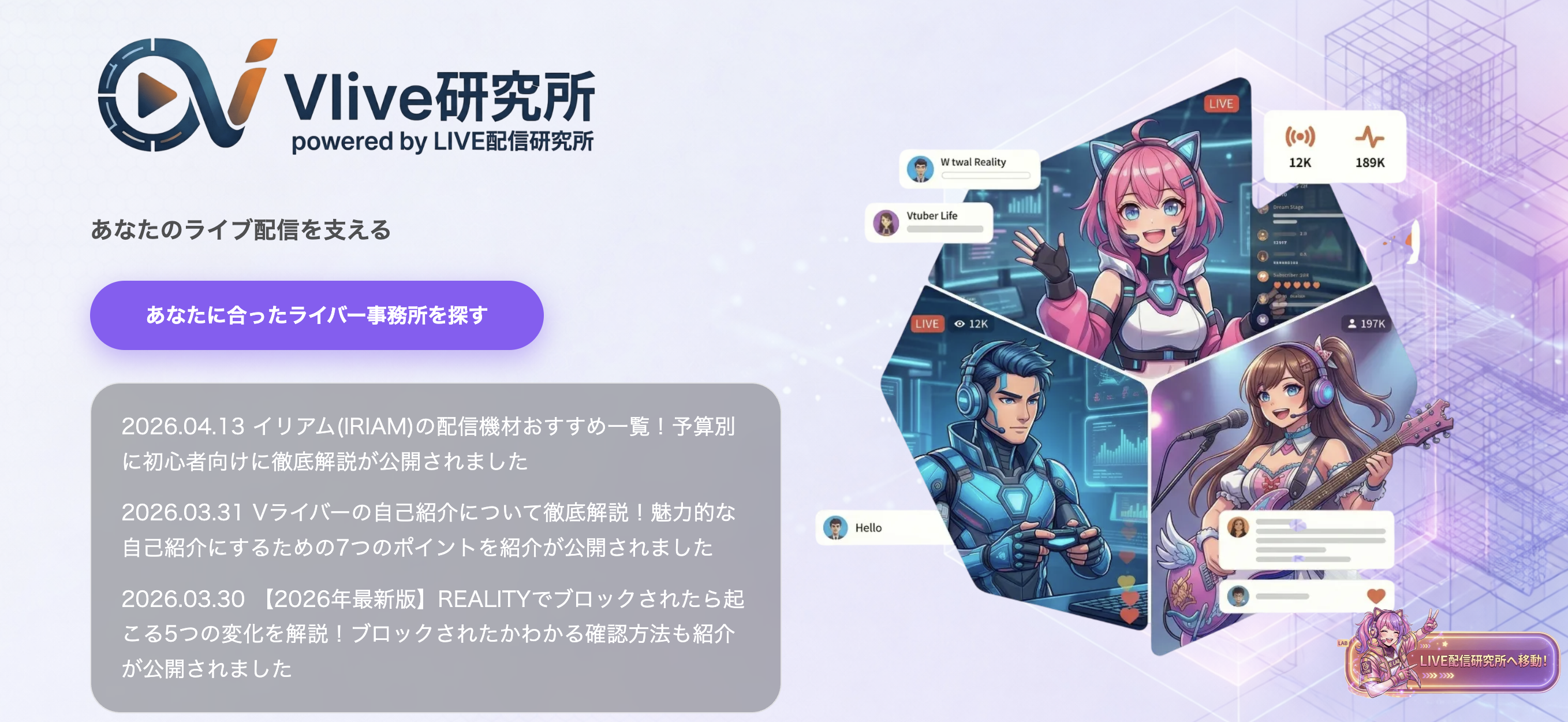 NextHiveMedia合同会社がバーチャル配信領域の専門メディア「Vライブ研究所」を開設