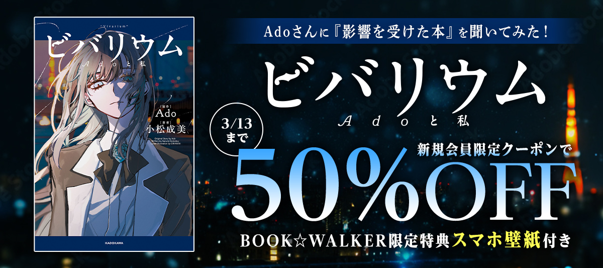 【BOOK☆WALKER】Ado初の自伝的小説『ビバリウム Adoと私』発売記念キャンペーン開催決定!2/26~、50%OFFクーポンやBW限定特典をプレゼント
