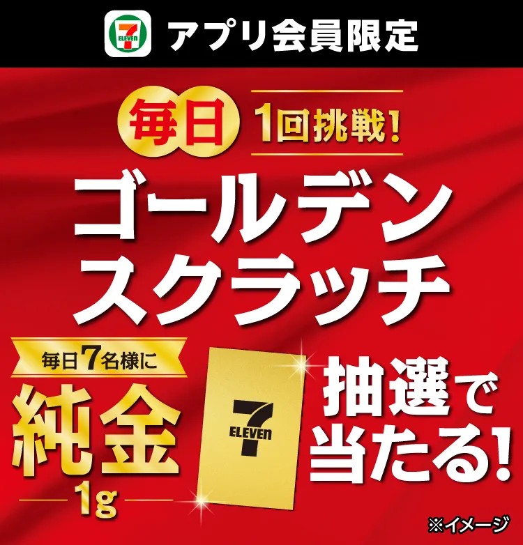 「純金1g」が抽選で毎日7名様に当たる!「ゴールデンスクラッチ」を開催!セブン‐イレブンアプリ会員限定で1日1回スクラッチに参加が可能!