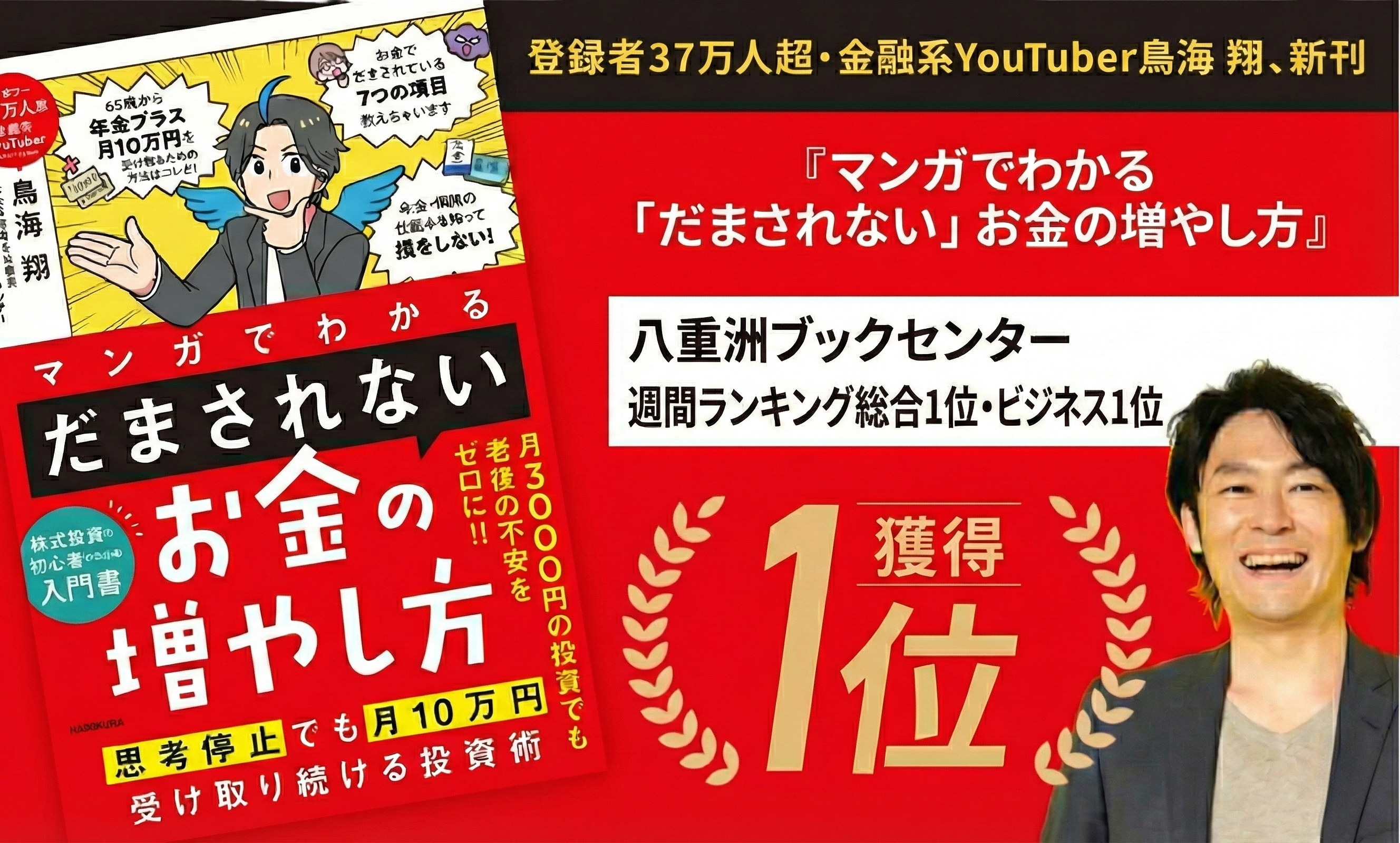 鳥海翔の新刊『マンガでわかる 「だまされない」お金の増やし方』、八重洲ブックセンターグランスタ八重洲店週間ランキング総合1位・ビジネス1位を獲得