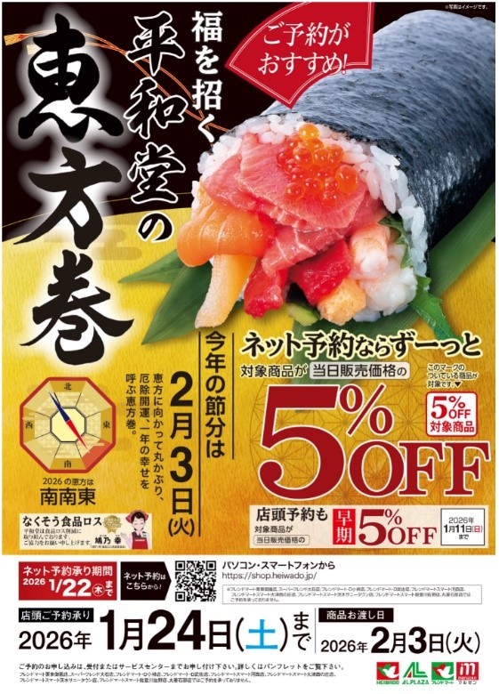 【平和堂】福を招く平和堂の「恵方巻」予約承り中