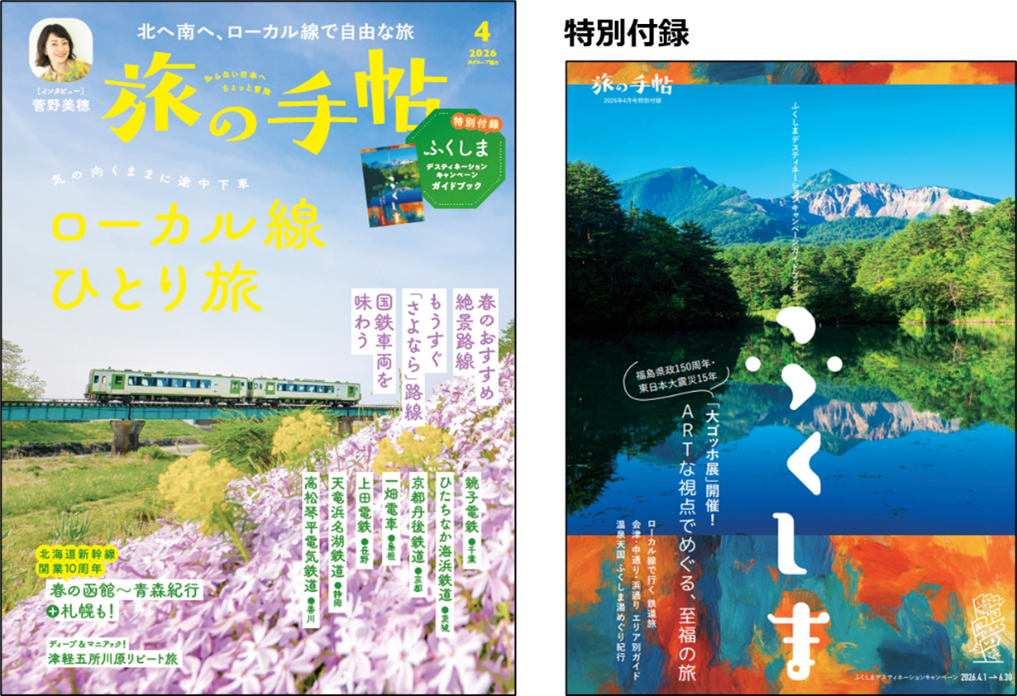 月刊『旅の手帖』2026年4月号はオールカラー100ページの「ふくしまデスティネーションキャンペーンガイドブック」付き!
