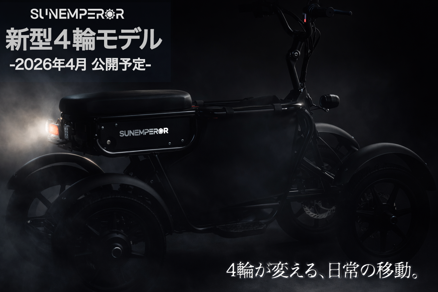 Sun Emperor初の4輪モデルとなる特定小型原付を今春公開へ ― 安定性を重視した免許不要の新たな移動手段
