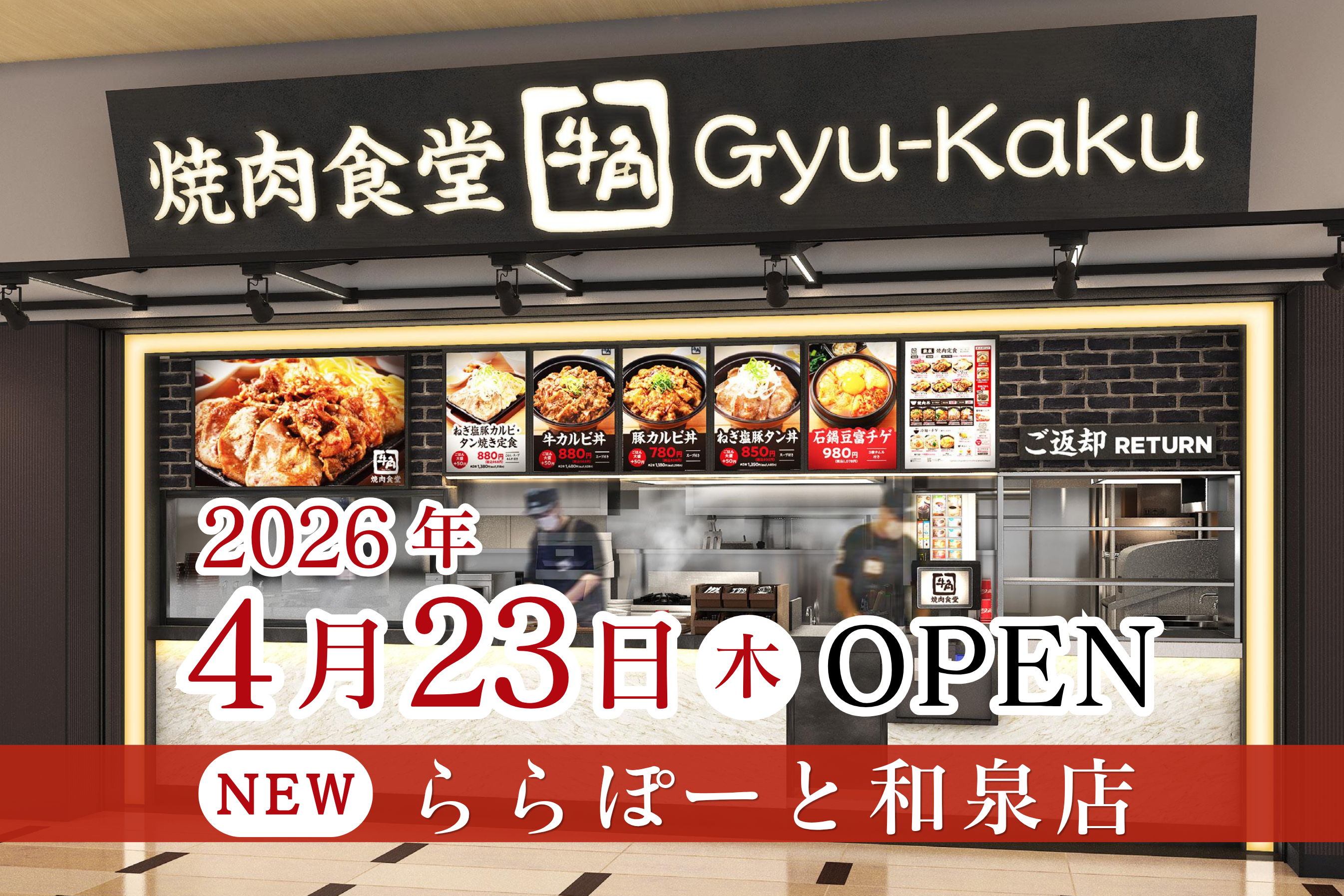 【牛角焼肉食堂】大阪4店舗目!ららぽーと和泉店 4/23 (木) オープン