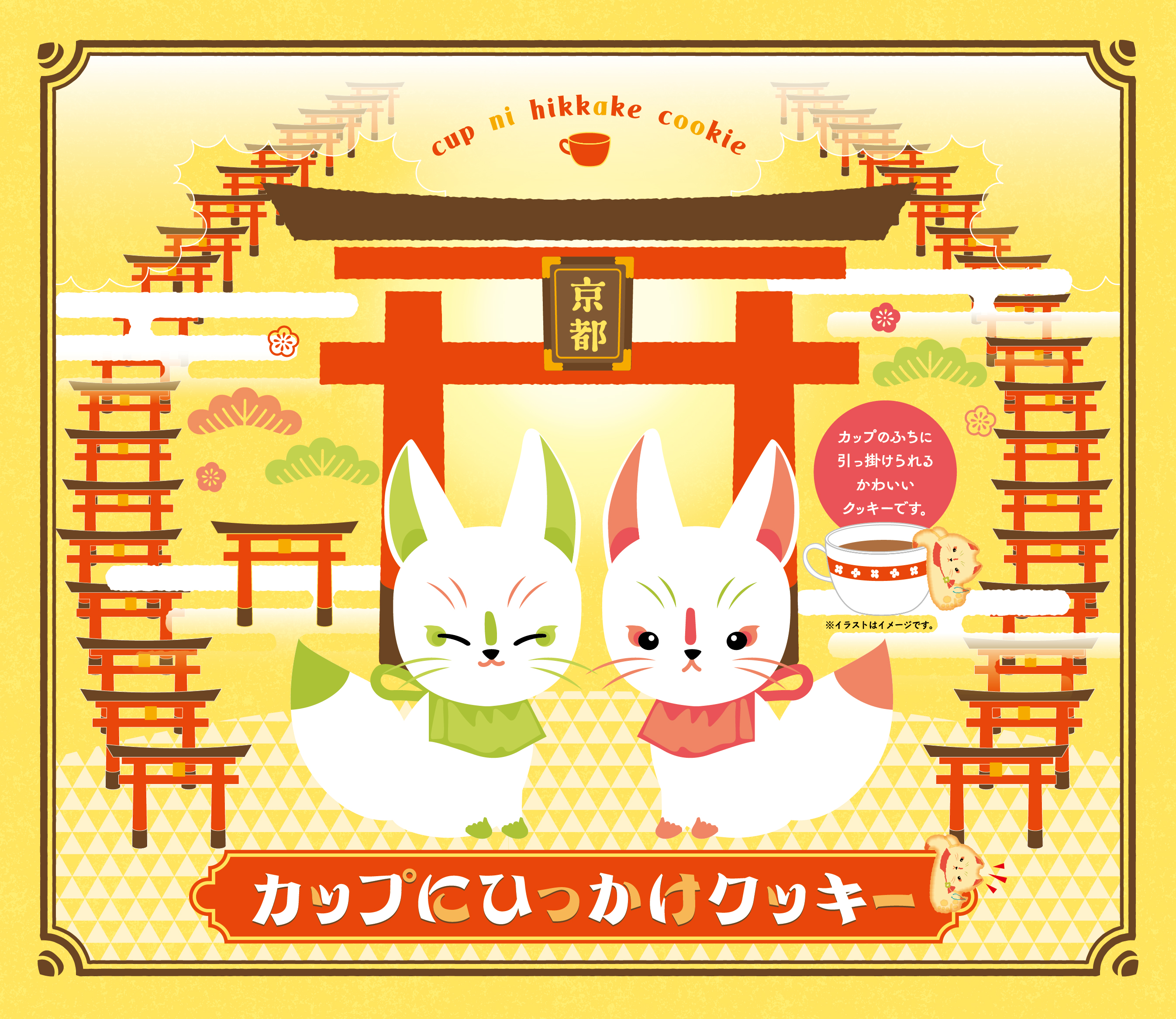 カップのふちにひっかけられる、白狐デザインの「カップにひっかけクッキー」が新発売!