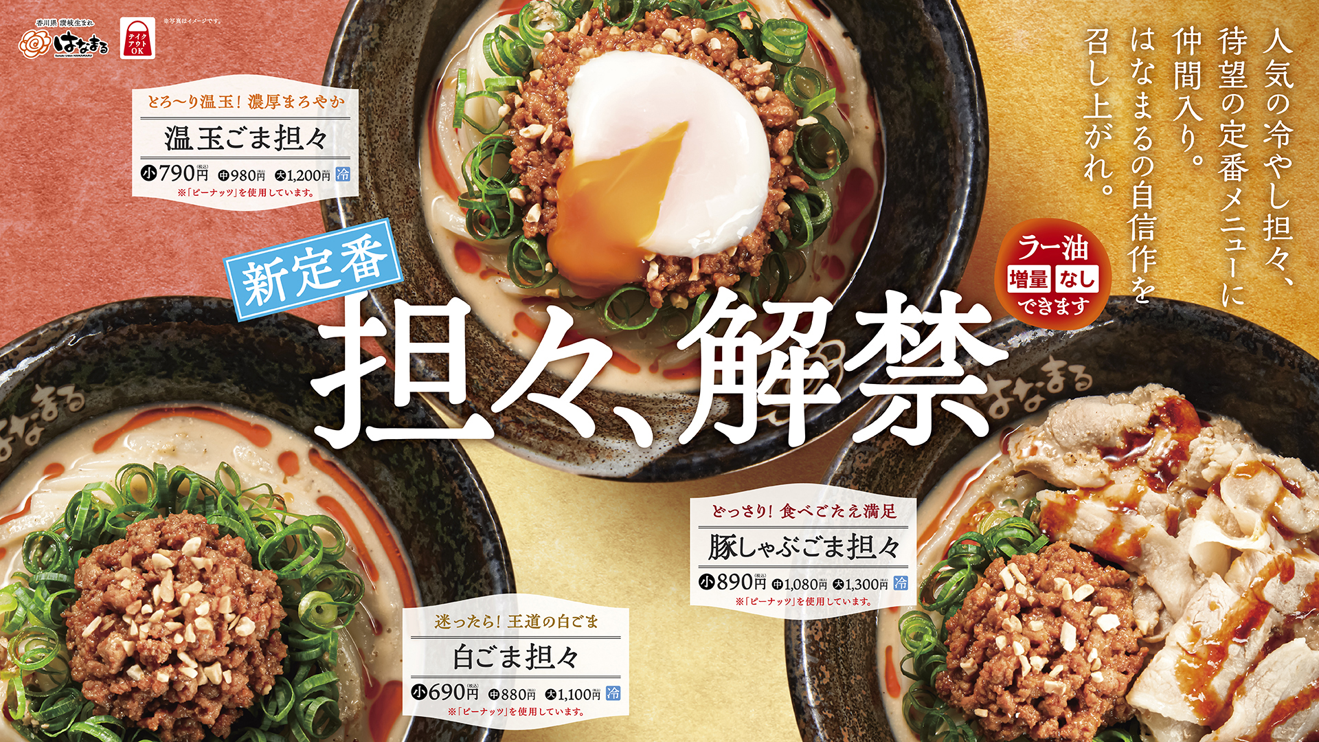「夏だけじゃない!」はなまる夏の一番人気「冷やし担々」が、春から秋まで楽しめる新定番に!4月23日(木)より、販売開始