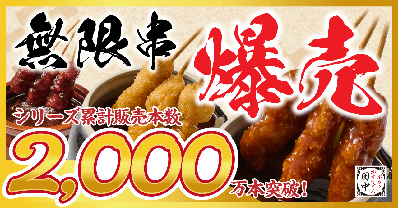 【累計売上10億円突破】串カツ田中の名物「無限串」がシリーズ累計2,000万本を記録!