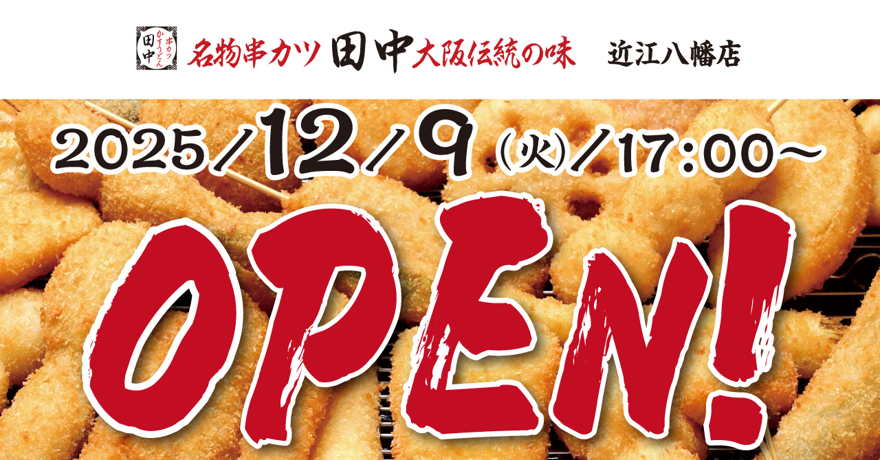 【新店情報】『串カツ田中 近江八幡店』が12月9日(火)にオープン!オープン記念キャンペーンで【生ビール290円(税込319円)!】