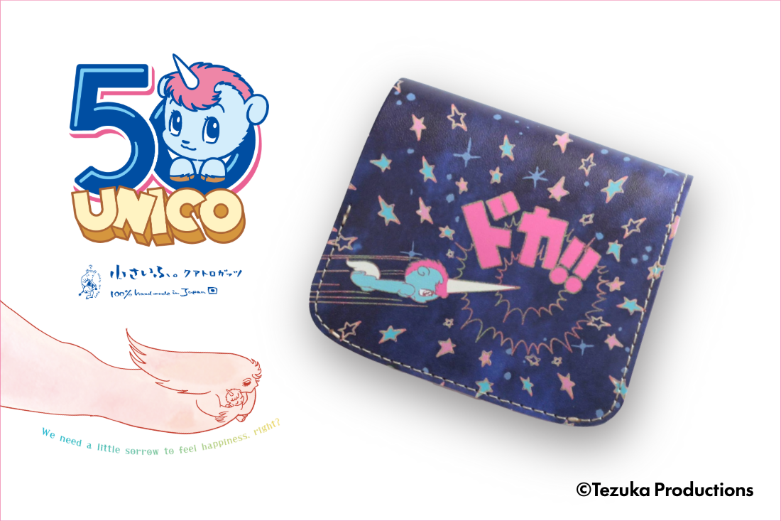 手塚治虫『ユニコ』50周年記念。レトロポップな本革ミニ財布、初回100個限定ロゴモデル発売。