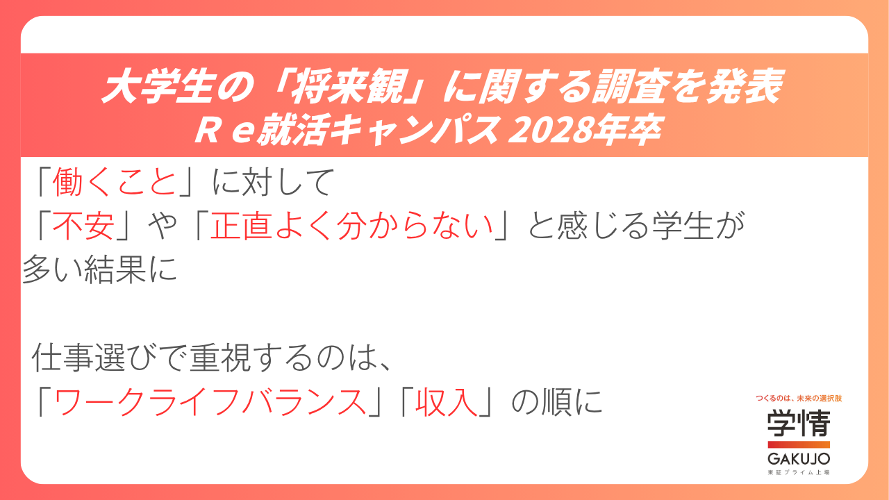 就活生、働くことは不安?楽しみ?収入よりも大事にしている仕事選びのポイント【大学3年生、将来観調査】