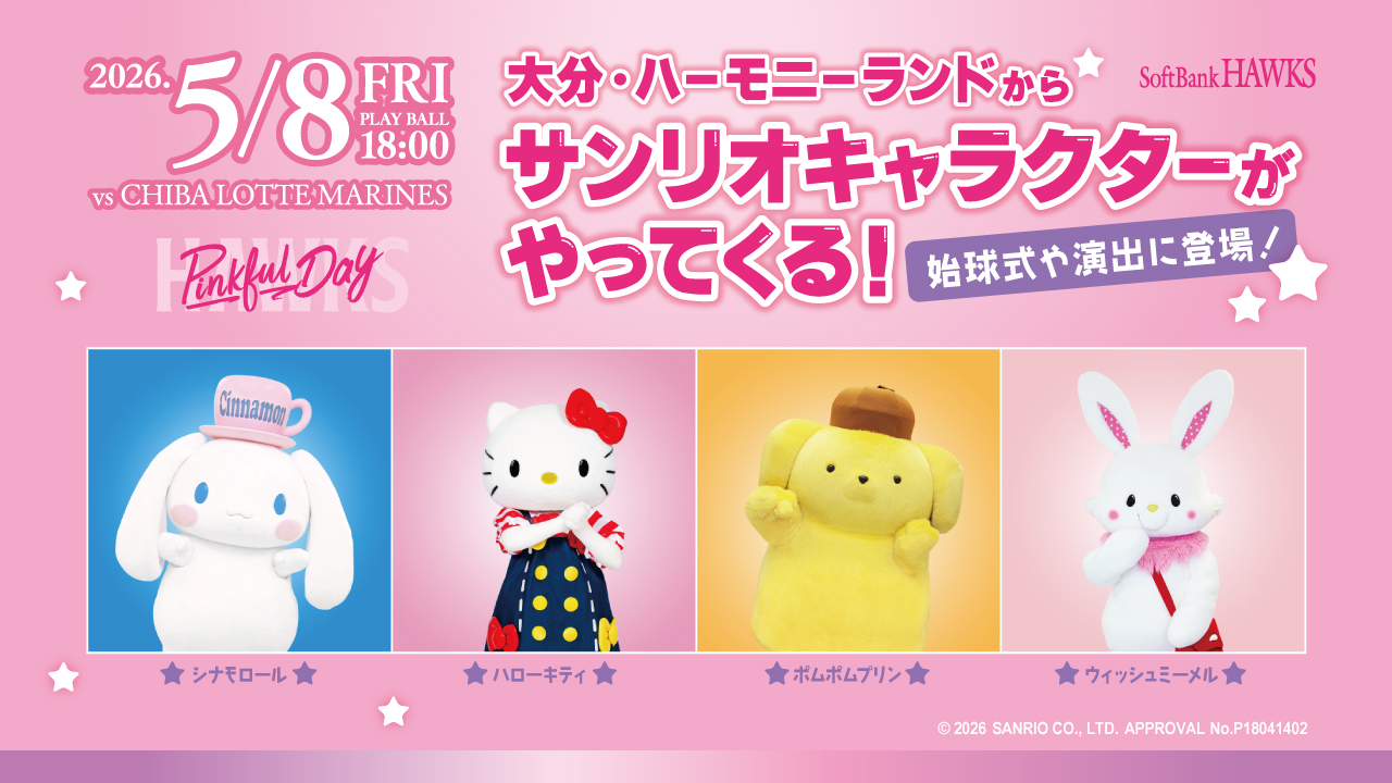 【福岡ソフトバンクホークス】5/8ピンクフルデー始球式にハローキティ登場!コラボグッズ販売も♪