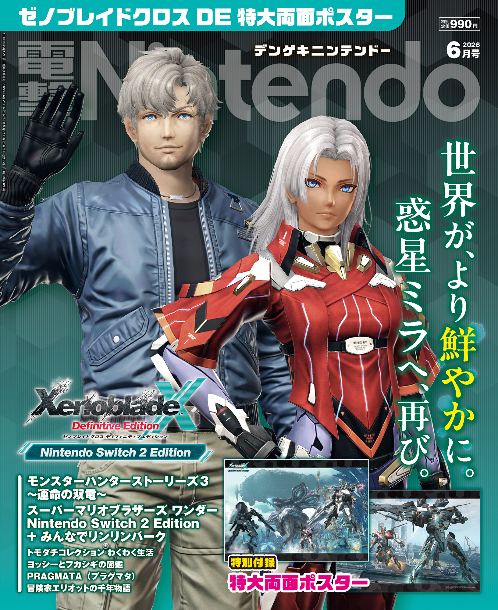 『ゼノブレイドクロス ディフィニティブエディション』の特大両面ポスター付きの『電撃Nintendo 2026年6月号』は、「Nintendo Switch 2」のゲーム情報満載で本日4月21日発売!