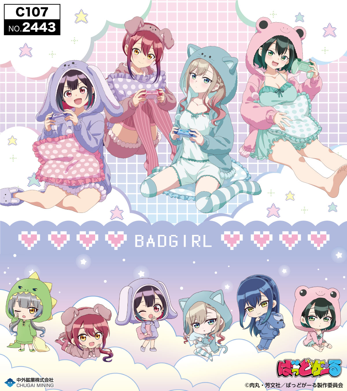 『ばっどがーる』より、“アニマルルームウェア”がテーマの描き下ろしイラストを使用した新作グッズが「コミックマーケット107」で登場!中外鉱業ブースにて販売決定!