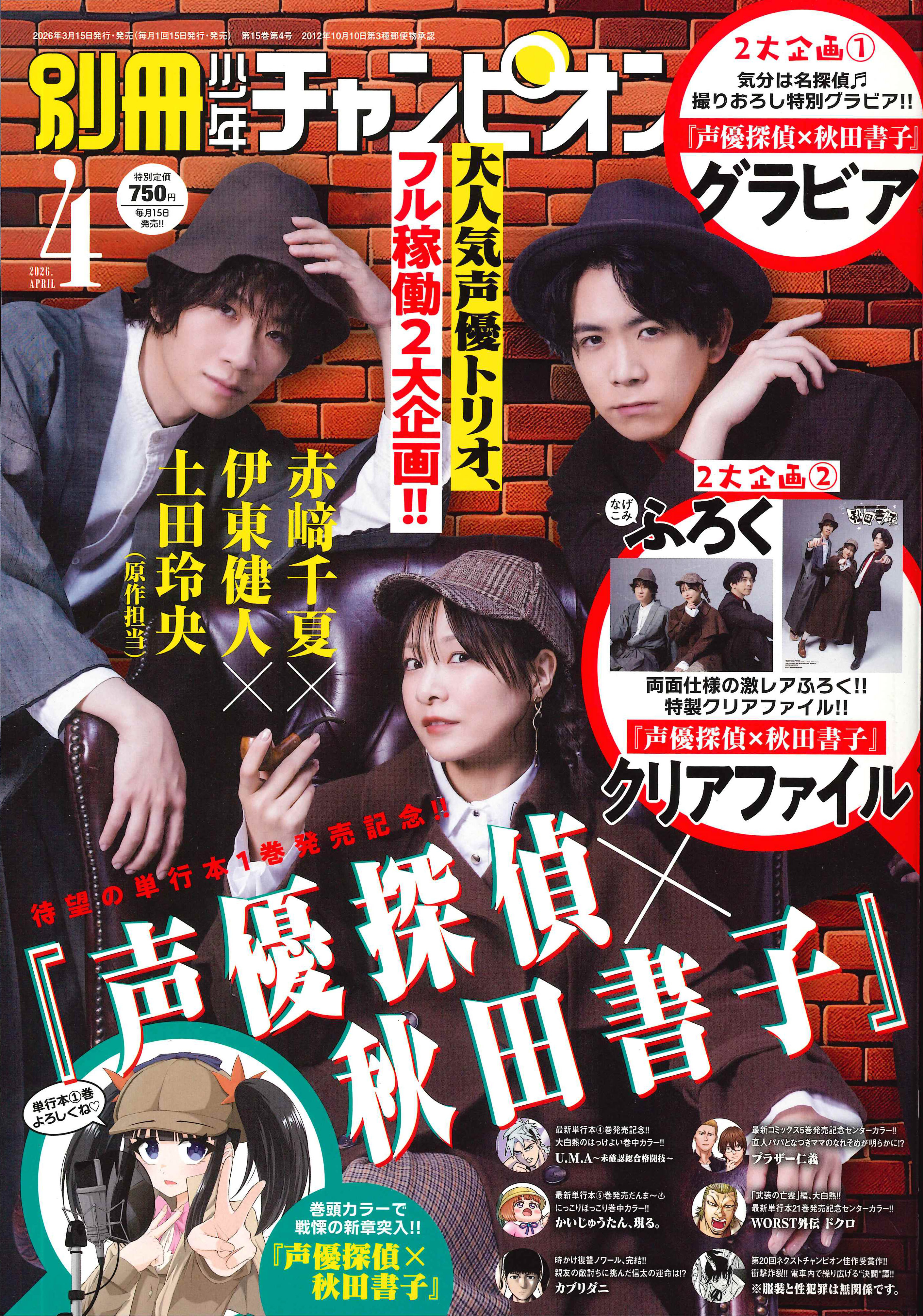 別冊少年チャンピオン4月号は、待望の単行本1巻発売&新章開始記念!!『声優探偵×秋田書子』が表紙&巻頭カラー!!