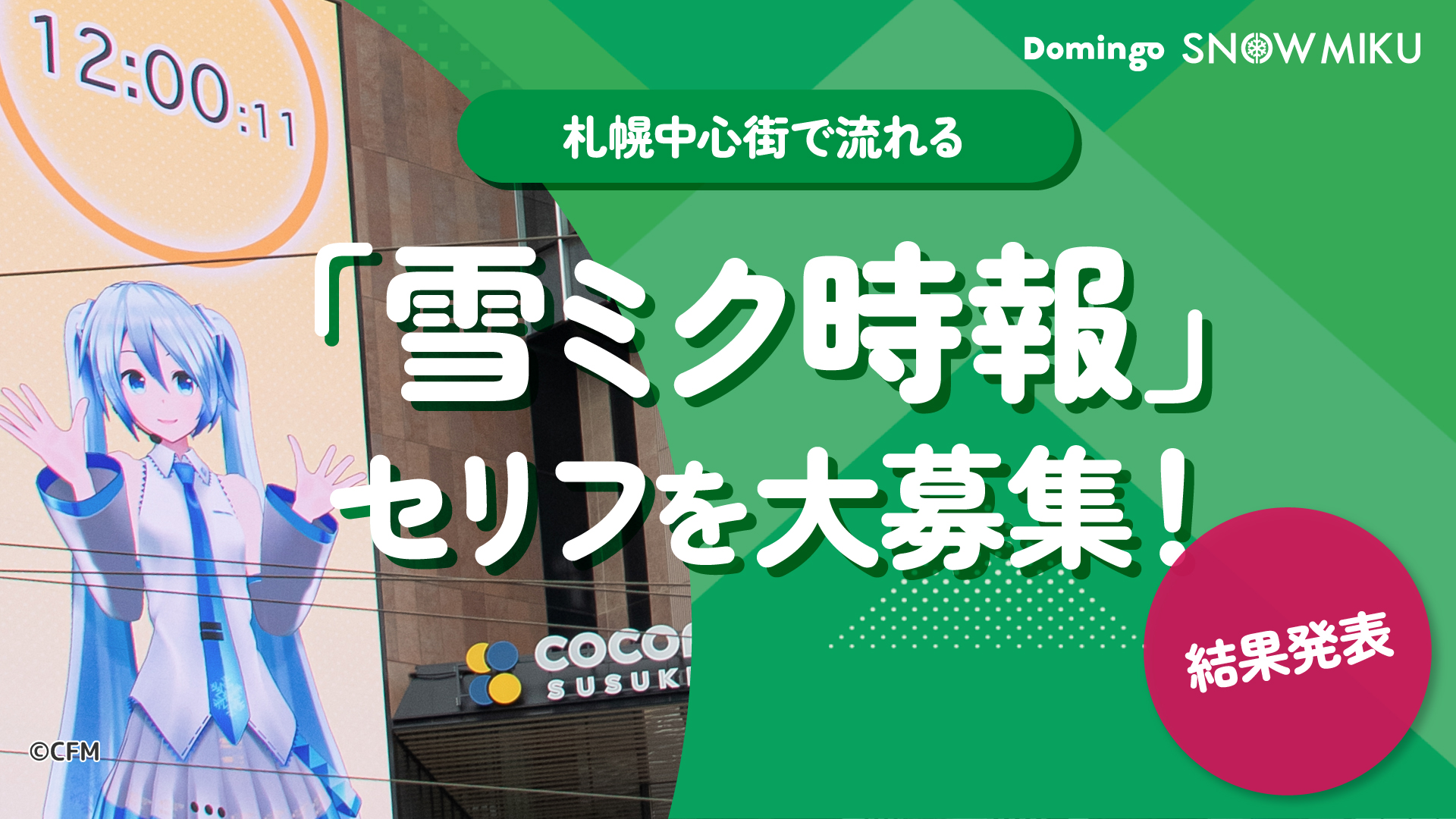 札幌中心街で流れる「雪ミク時報」、一般公募の中から5つの新しいセリフを決定!