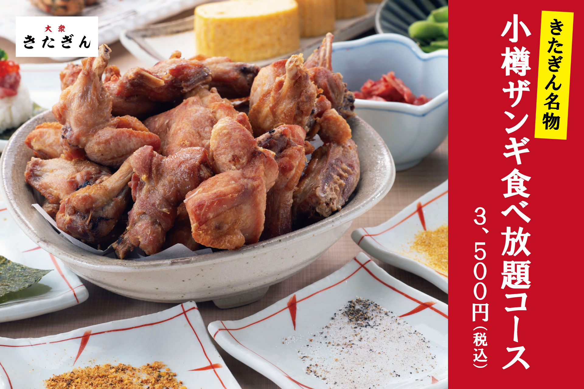 【小樽ザンギ食べ放題】きたぎん対象店舗にて『きたぎん名物 小樽ザンギ食べ放題コース』が登場! -