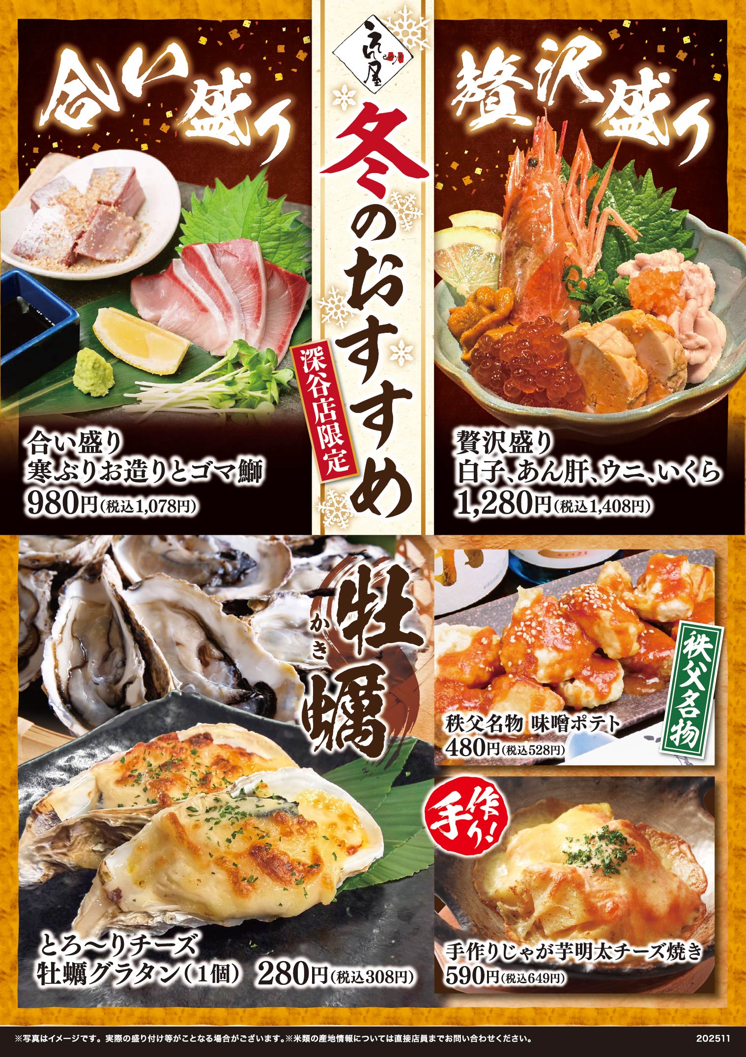 海鮮居酒屋「鮨のえん屋」埼玉深谷店 限定 「冬のおすすめ」メニュー 12月1日(月)からスタート! -