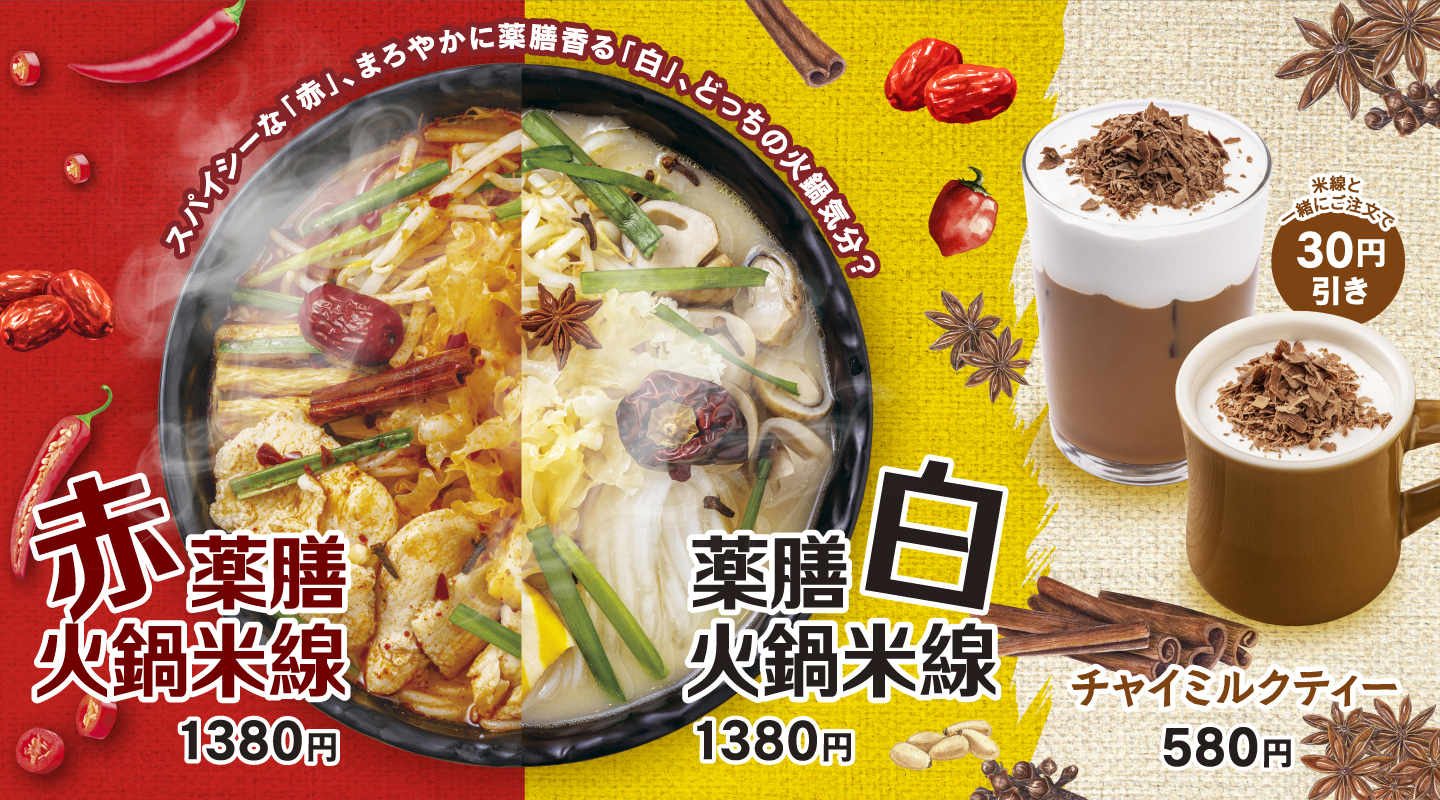 冬限定!香港米麺「タムジャイサムゴー」の新メニュー しびれる旨辛の「赤」?まろやかなコク旨の「白」?気分にあわせて選べる『薬膳火鍋米線』新発売! -
