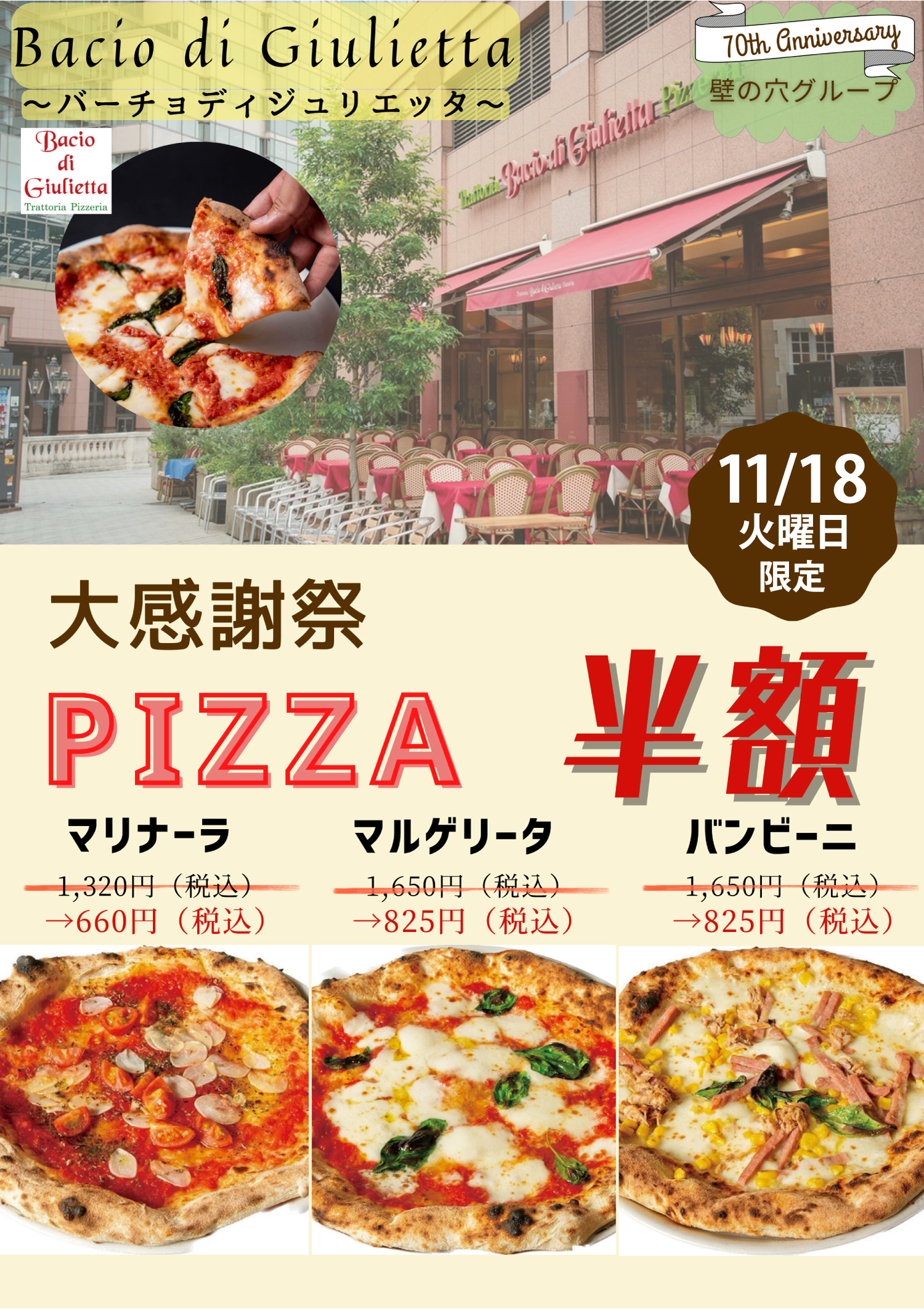 イタリア本場のピッツァ「バーチョ・ディ・ジュリエッタ恵比寿店」 11月18日(火)大感謝祭を開催! -