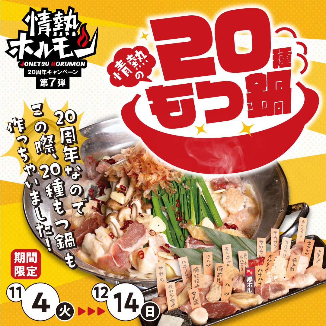 情熱ホルモン20周年企画第7弾!「情熱の20種もつ鍋」登場!!