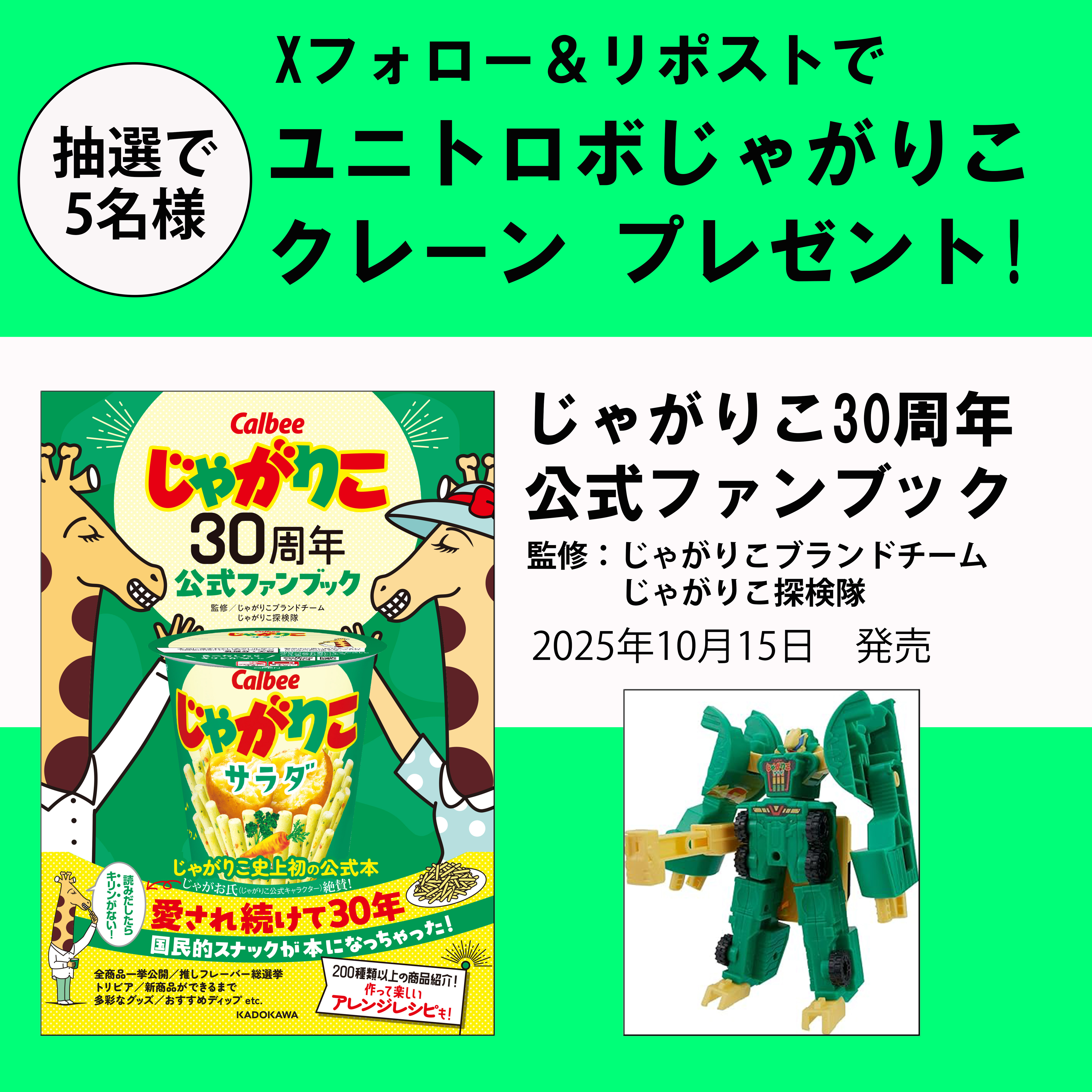 【Xプレゼントキャンペーン】アニバーサリーを迎えた国民的スナック初の公式本『じゃがりこ30周年公式ファンブック』10月15日(水)発売。抽選で5名様に「ユニトロボ じゃがりこクレーン」をプレゼント! -