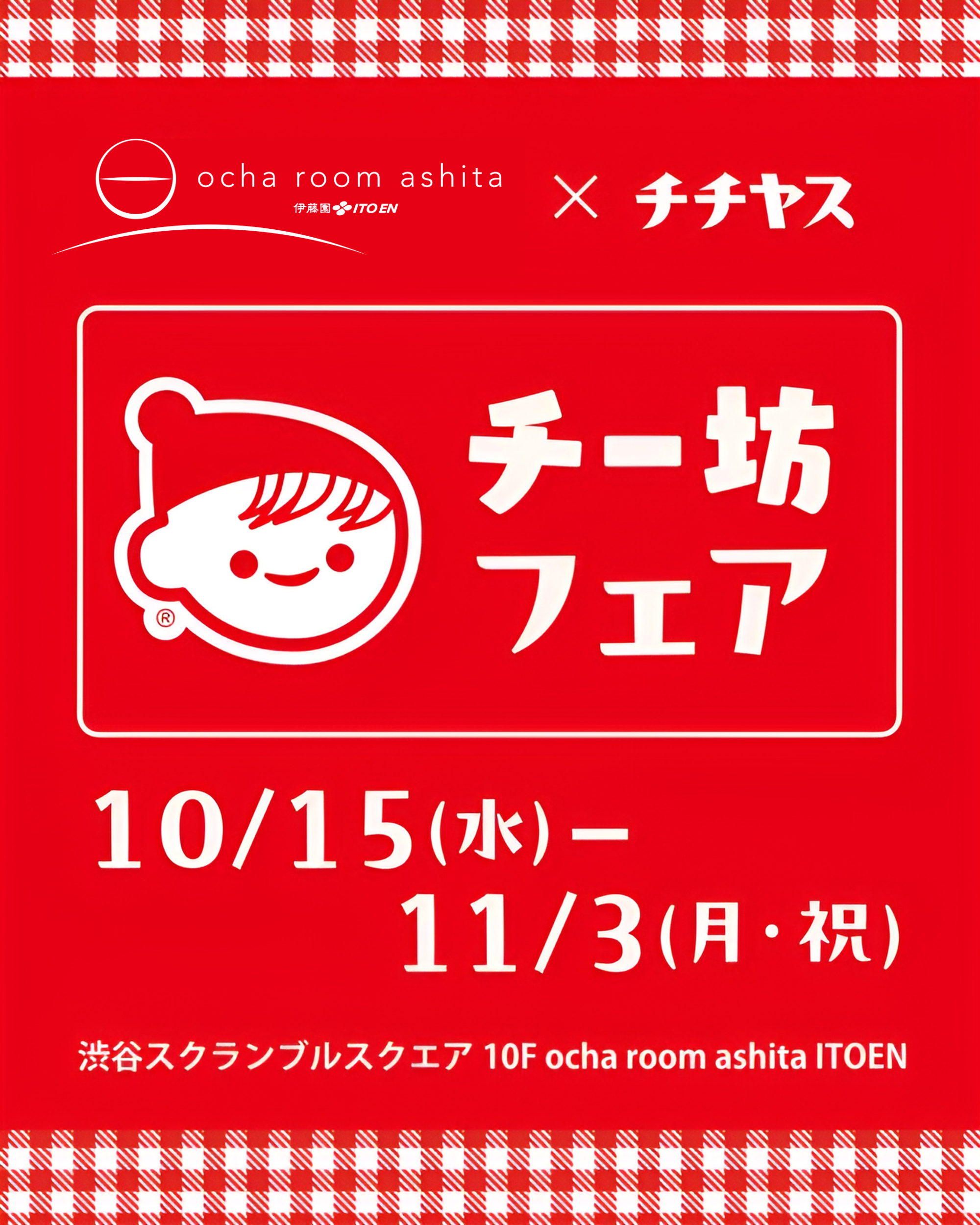 渋谷スクランブルスクエアにて「ocha room ashita ITOEN × チチヤス・チー坊フェア」を、2025年10月15日(水)~11月3日(月)で開催! -
