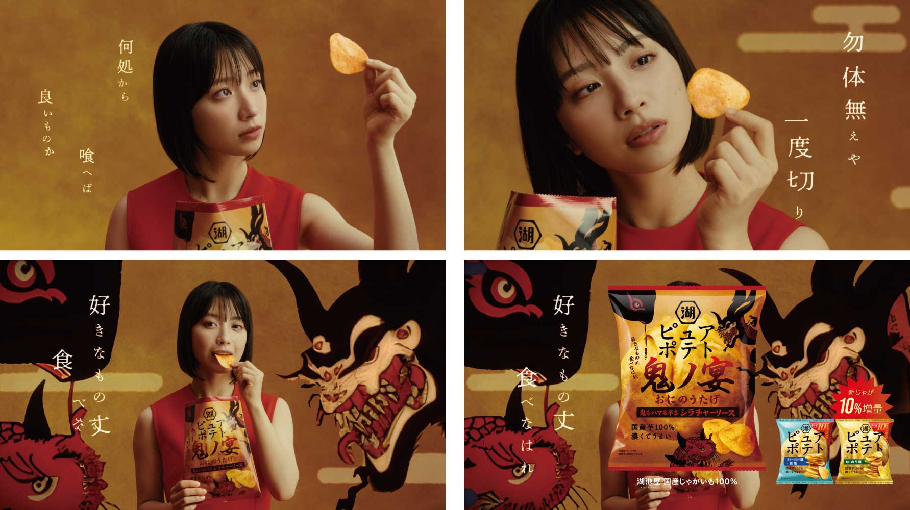 【藤崎ゆみあさん出演】湖池屋「ピュアポテト 鬼ノ宴」新TVCM SNS総再生回数10億回突破の話題曲 友成空「鬼ノ宴」とコラボした”やみつき”な新TVCM、2025年10月9日(木)より放映開始 -