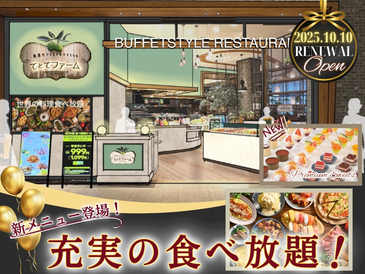 【10/10リフレッシュOPEN!!新メニューも登場!!】バラエティー豊かな食べ放題『てとてファーム mozoワンダーシティ』が装い新たにリフレッシュOPEN!更に色とりどりのスイーツアイテムが新登場! -
