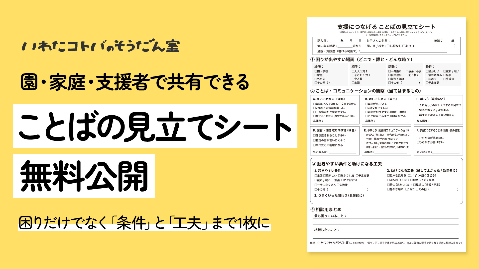言語聴覚士が作成「支援につなげる ことばの見立てシート」を無料公開