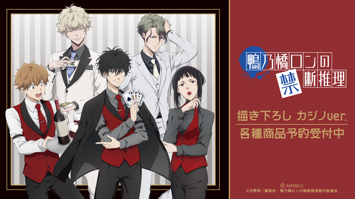 TVアニメ「鴨乃橋ロンの禁断推理」の描き下ろし カジノver. トレーディングアクリルカードなどの受注を開始!!アニメ・漫画のオリジナルグッズを販売する「AMNIBUS」にて