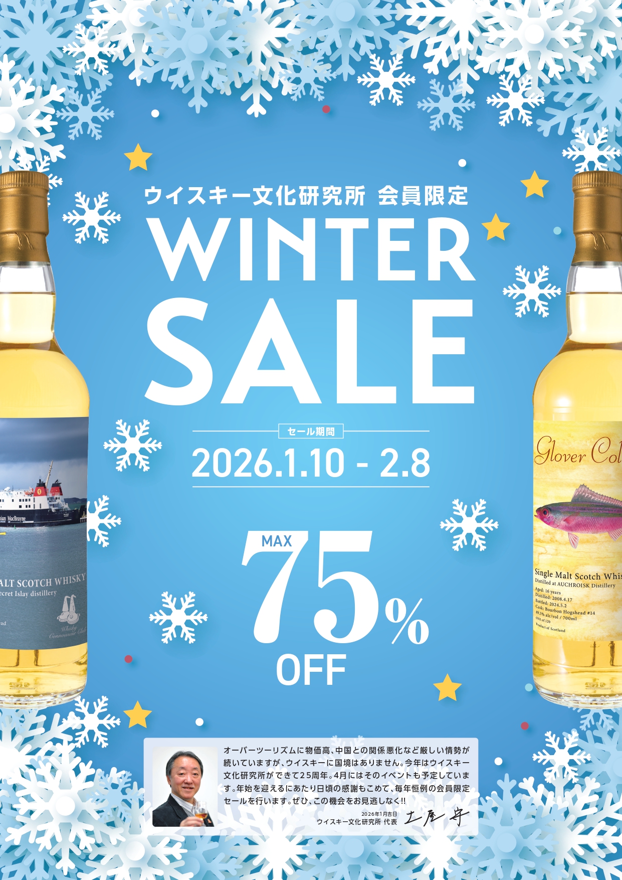 【ウイスキー文化研究所会員限定】書籍やグッズ、オリジナルボトルを対象とした最大75%OFFの冬セール開催!