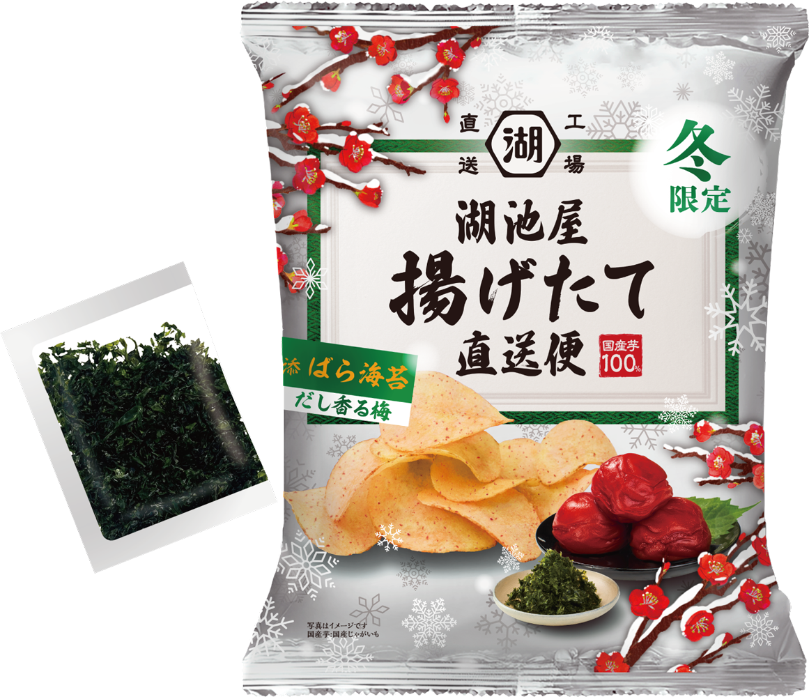 【冬限定!】日本の“冬”を“揚げたて”ポテトチップスで味わう「冬の揚げたて直送便 だし香る梅」湖池屋オンラインショップにて受注販売中